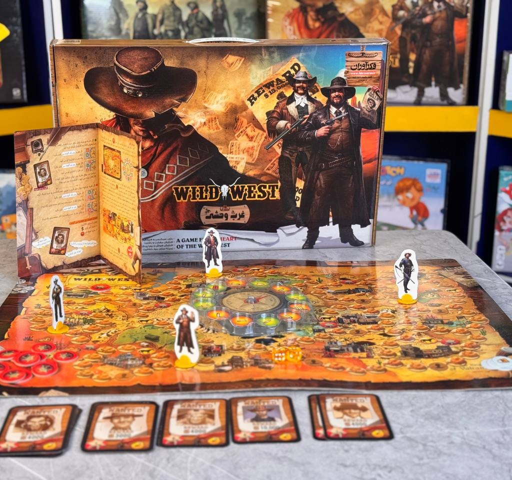 بوردگیم غرب وحشی داستانش همینه. شما باید توی نقشه بازی بگردید و مجرم هارو از بین ببرید تا بتونید پول بیشتری از بقیه رقیب ها کسب کنید. توی هر نوبت تاس میریزید و به انتخاب خودتون تصمیم میگیرد چطور روی نقشه حرکت کنید تا بتونید جون یا امتیاز بگیرید. برای گرفتن امتیاز باید روی خونه مربوط قرار بگیرید و یکی از کارت های مجرم هارو بکشید. روی هر کارت میزان جون و جایزه اون مجرم نوشته شده.